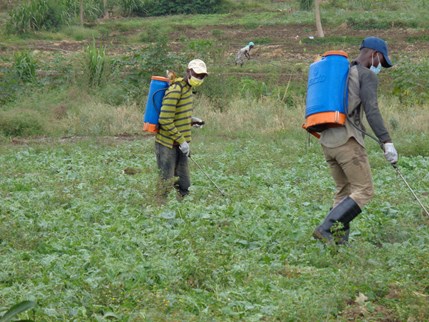 Mesmo considerando a já alta degradação do cultivo, mas considerando a urgência e prioridade em se atender as necessidades da cooperativa, optamos por realizar um teste de campo. A pulverização foi feita numa área de 140 metros quadrados, pertencente ao agricultor Sr. Monteiro.